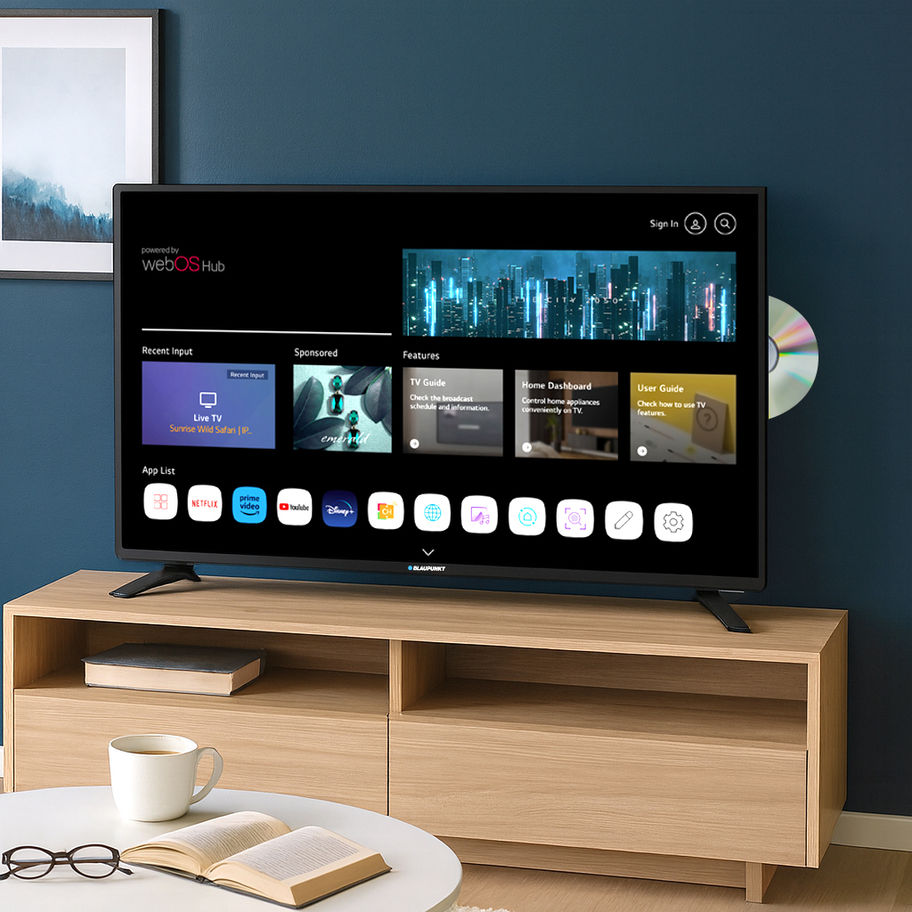 The Blaupunkt BP24WOSDVD 24” Full HD Smart TV with Built-in DVD Player is an all-in-one entertainment TV designed for both home and on-the-go use. It features a 24-inch Full HD (1920 × 1080) display, is powered by webOS TV, and includes a built-in DVD player so you can watch your favourite discs without needing a separate unit. With HDMI connectivity, HDMI ARC (Audio Return Channel) support, and a 12V DC adaptor included, it’s a great option for bedrooms, caravans, camping setups, and compact spaces where flexibility matters.
