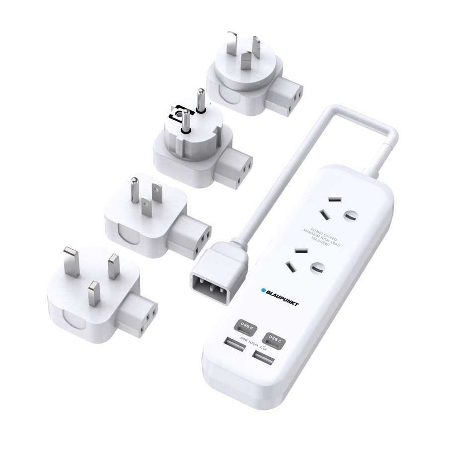 The Blaupunkt BPTRAV12 2-Outlet Travel Powerboard is a compact, multi-device charging solution built for travel and everyday convenience. It combines 2 × AC outlets with 2 × USB‑C and 2 × USB‑A ports, allowing you to power and charge multiple devices from one neat unit. With a compact design, 90cm cable length, and 4 included adaptors (Australia, Europe, USA, UK), it’s ideal for keeping phones, tablets, and travel essentials charged in hotels, offices, and shared spaces.